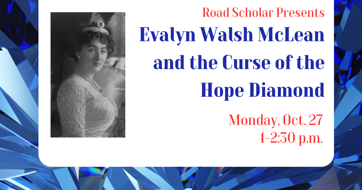 Join us for a free one-hour lecture and Q&A to learn about Evalyn Walsh McLean and the curse of the Hope Diamond.