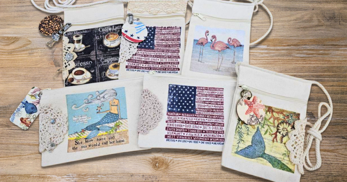 Join Carolyn Robinette to create a crossbody canvas bag, perfect to carry your phone and other essentials or to give as a gift! Decoupage with unique napkins and add buttons, gemstones, lace doilies, and a two-sided tag and a charm to really make your bag your own.